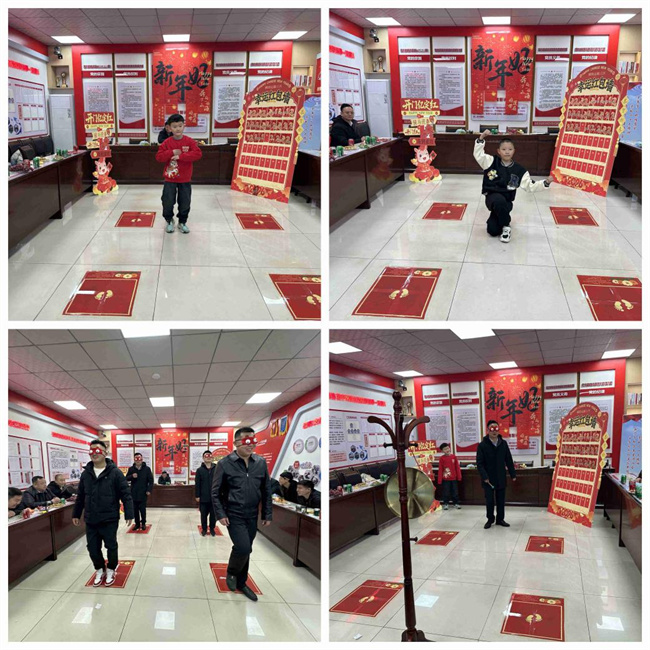 伴随着欢快的新春旋律,家属才艺展示率先登场,用一首《库里之歌》舞蹈瞬间点燃了现场氛围。随后,一段刚劲有力的中华武术惊艳亮相,赢得现场阵阵掌声。才艺展示结束后,互动游戏轮番上演,《蒙眼原地走》、《蒙眼敲锣》、《运气红包墙》等趣味活动接连开展,现场全员踊跃参与、热情高涨,掌声、笑声、欢呼声此起彼伏,场上场下互动频频、暖意融融,充分展现了工区大家庭的团圆与和睦。